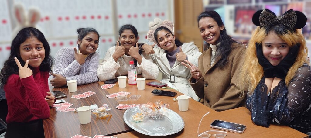 日本風のハロウィンということで、メロスではお菓子を食べながらおしゃべりしたり、トランプやかるたをして楽しみました。